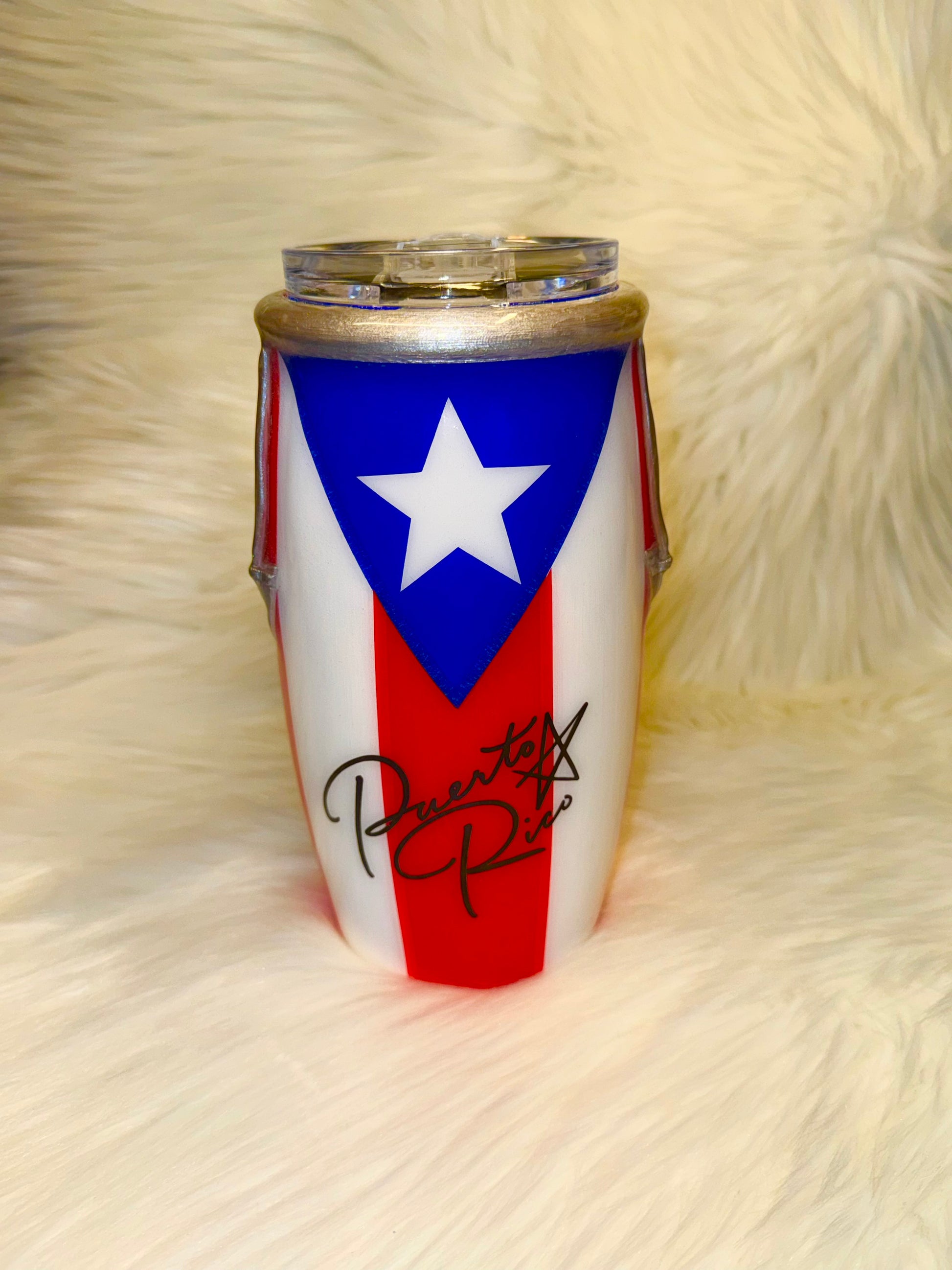 Hand Painted Bad Bunny Sapo Concho Puerto Rican Flag Conga 25 oz comes with a lid and straw. This item is hand painted and hand sculpted.